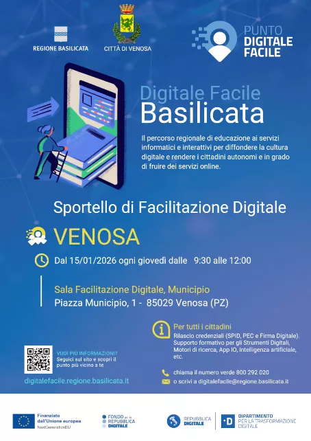 Creato il - 12/01/2026 SPORTELLO DIGITALE - Lezione sulla Identità digitale: SPID e CIE SPORTELLO DIGITALE - Lezione sulla Identità digitale: SPID e CIE - 15/01/2026 alle ore 16.00 - Sala Consiliare Comune di Venosa Caricamento… Formazione professionalealfabetizzazione digitale Text